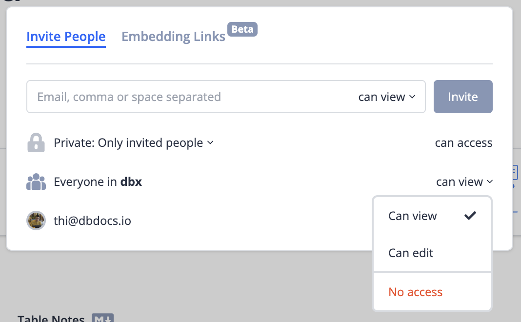 By default, dbdocs projects created are accessible by public, which means anyone can view it via the shareable link.